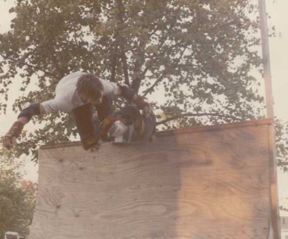 Adam Graham had a way fun half-pipe in his backyard. That ramp was located over off Hemlock in Stonybrook. It was 8' wide and had kinda odd eliptical transitions. The ramp used to belong to .....damn.. forgot his name but I do remember the ramp did live over on Torrey St. A few years prior, the then owner wanted to get rid of it. So Adam and a few of his BIG friends went over and got that ramp out of the backyard. They loaded it up on a truck and took it back to Adam's house. The frame was strengthened up a bit and a fresh layer of plywood was put down. He always had some funky coping tho. I remember things like broom sticks, wood corner molding. angle iron or just about anything you could pop off of. MANY great sessions took place on that ramp. Adam rarely wore any pads. He always said, "Only thing I need is my sunglasses". He and Lee would just rip that ramp up! They both had a wild style that was totally their own. Kinda sketchy... always edgy..and they could both pull moves out of thin air! They had been skating together for years and it showed. I remember skating there several times. The grill would be going, music playing loud and a whole bunch of neighbors came out to party and watch the skating. Adam was very popular in his 'hood. Everybody knew him and he knew everybody. Enough said.