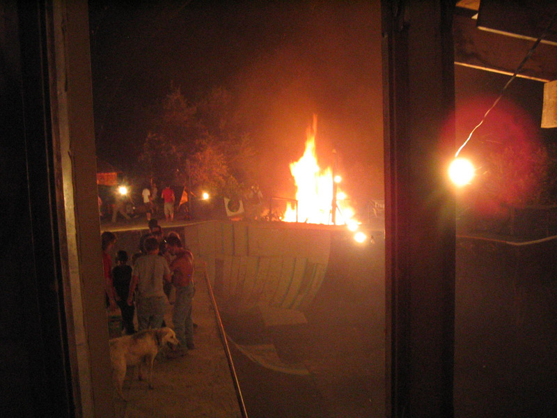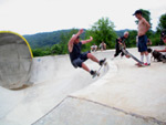 BOWL BASH 10 is now in the history books. Pretty much like all the other parties. Awesome skating, TONS of friends, good vibe ... just skaters doing what skaters do. I have two stories that I wrote on my previous visits to Skatopia. One about "BOWL BASH 9" and one on the "BACKWOODS BLOWOUT 10". Pick one and apply it to this party. If you haven't been to SKATOPIA yet ... you need to put this place on your list of "must skate". Well... that is if your thing is gnarly bowls, TALL vert and coping that could be anything from poured cement to real pool coping to steel pipe .. to .. a human leg bone ... ;-)