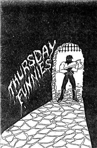 "Thursday Funnies" was published on April 23, 1983 by "Liberty". This all comic 'zine had some of the funnest shit in it!. Stories like "Art and His Magic Beans" and "Latrine and Swirley" are my faves. :-D
