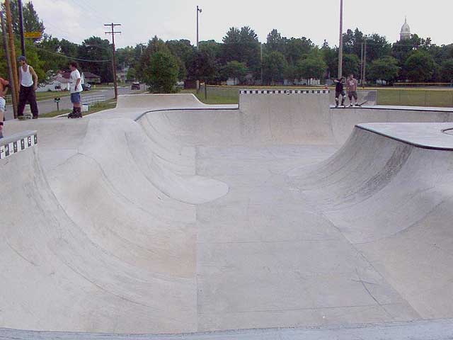 bowls, half pipe type area... vert extentions.. even a small "pool stairs" gig up againest the one wall.