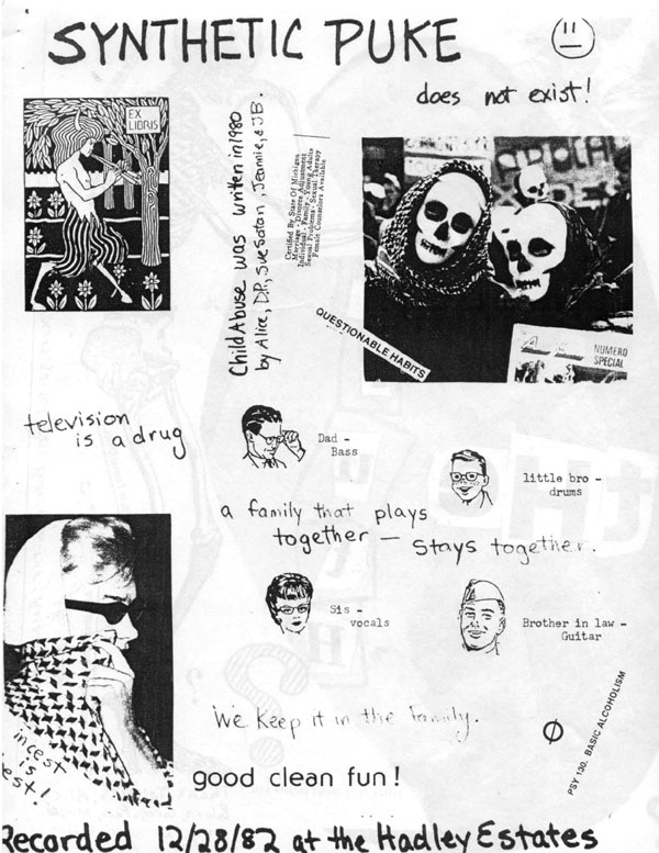 Alas, that was where "Synthetic Puke" came from--at least by that name at that juncture. Every time anyone pissed us off we would remark from the sides of our mouths that it might be time to "hurl up a batch of synthetic puke".