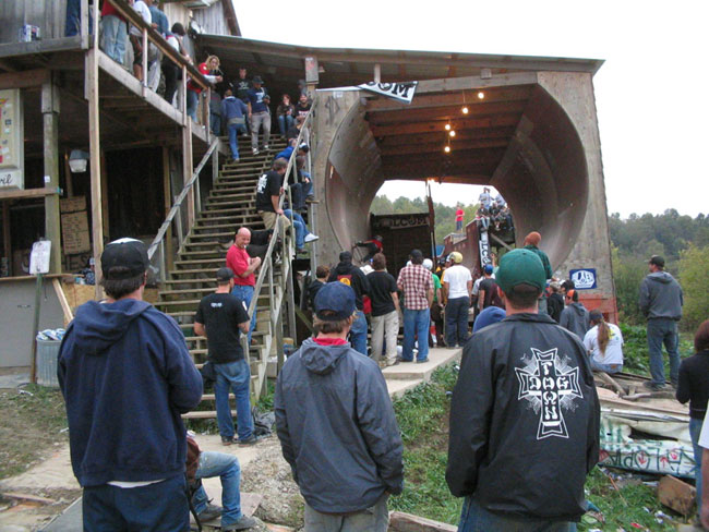 The crowd took this time to grab beers, smoke phattys, eat some food and make their way down the hill to the big barn. After a pretty entertaining commentary by Brewce on the "State of Skate Manliness" the