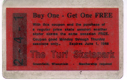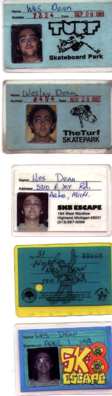 Here are all my skate park id cards. I also have a 3 day temp pass from Endless Summer but cant find it at the moment. Also .. dig the "buy one session get one free" card from the 'Turf (surf and turf). I've carried that card with me every day since I got it back in 1988. Its in my wallet right now. :-)